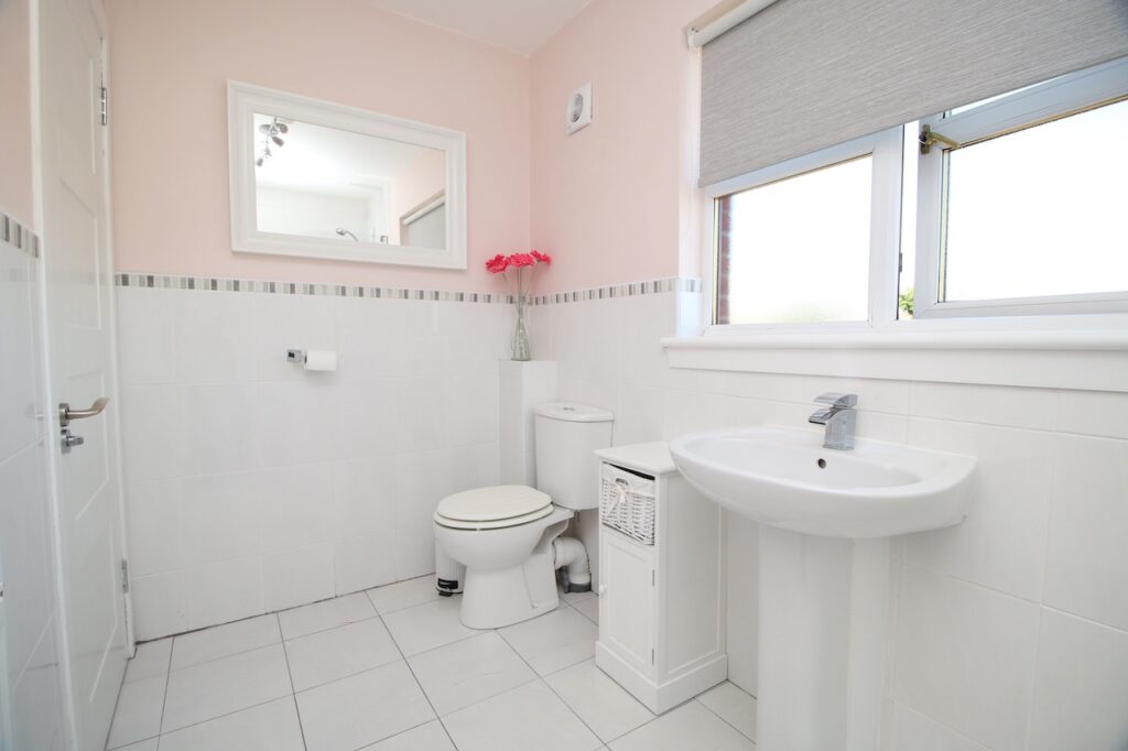 As you enter the property you are welcomed by a practical entrance vestibule which leads into the lounge area. The bright front facing lounge is sure to impress by the generous proportion of the room and floods the room with natural light. A separate dining area with fabulous French doors, is the perfect space for family mealtimes or entertaining. The spacious modern kitchen has been fitted with an excellent range of base and wall units with plenty of natural light pouring in through the two double windows which face onto the rear garden. To complete the ground floor is a contemporary designed WC and convenient utility room with separate back door access onto the enclosed gardens. All appliances are also included in the sale.