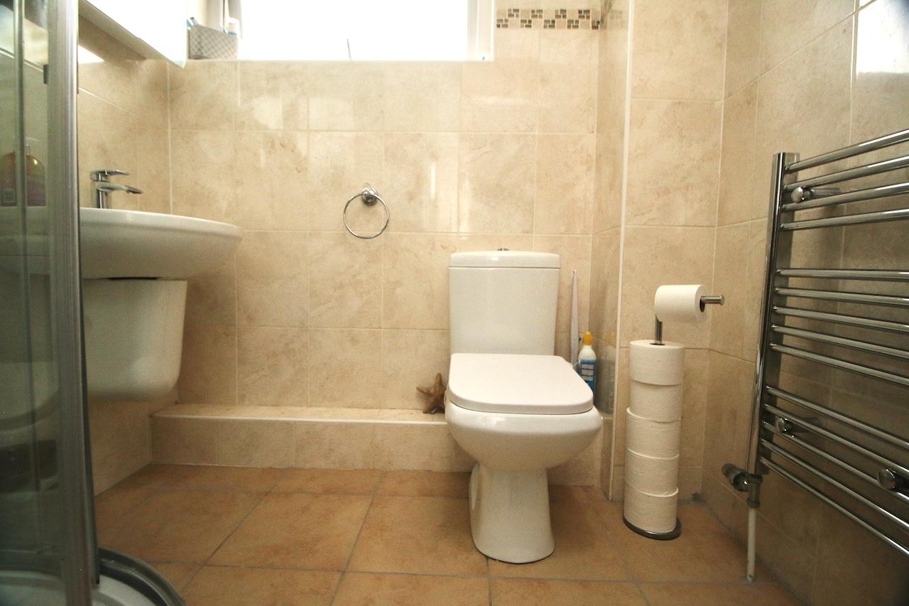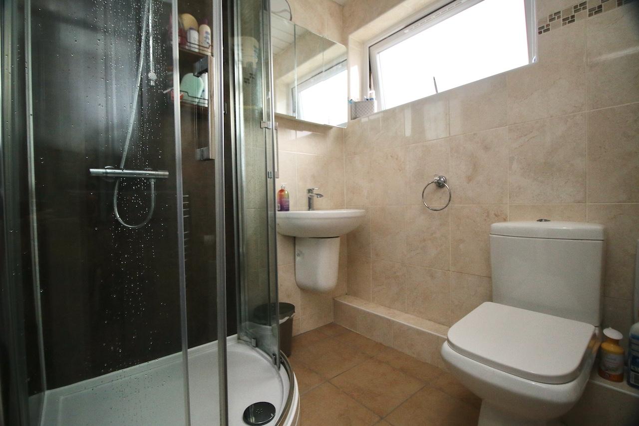 On the upper level, the light and airy hallway leads to three double bedrooms which are pleasing to be in and offer good size accommodation. The shower room includes, corner shower cubicle, WC, wash basin finished with floor to ceiling wall tiling and chrome accessories.