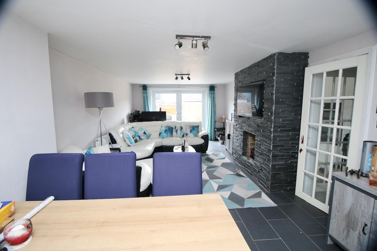 As you enter the property you will be immediately impressed by the spacious entrance hall and living space, perfect for modern family life. The newly remodelled kitchen has an excellent range of base and wall units complete with; oven, hob, integrated fridge/freezer, dishwasher and washing machine which are included in the sale with convenient rear door access to the garden. The open plan lounge/dining area is sure to impress by the generous size of the room with beautiful French doors which flood the room with natural light and also access the garden. The dining space is the perfect place for family mealtimes or entertaining. To complete the lower floor is a large store room which is currently being used as a utility room.