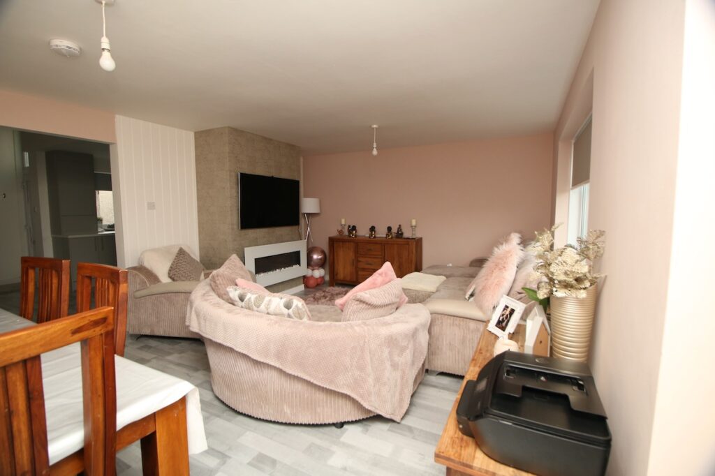 As you enter the property you will be immediately impressed with the natural light pouring throughout the lower floor of this home. The stylish kitchen has been recently remodelled giving generous wall and base units along with gas hob and modern tiling. As you enter into the lounge/dining area you are immediately impressed by the generous size of this room along with the focal point which is the stunning feature fireplace. The patio doors in the lounge lead onto the rear garden which provides an idea area for outdoor entertaining. To complete the ground floor Bedroom 3 has plenty of space and natural light.