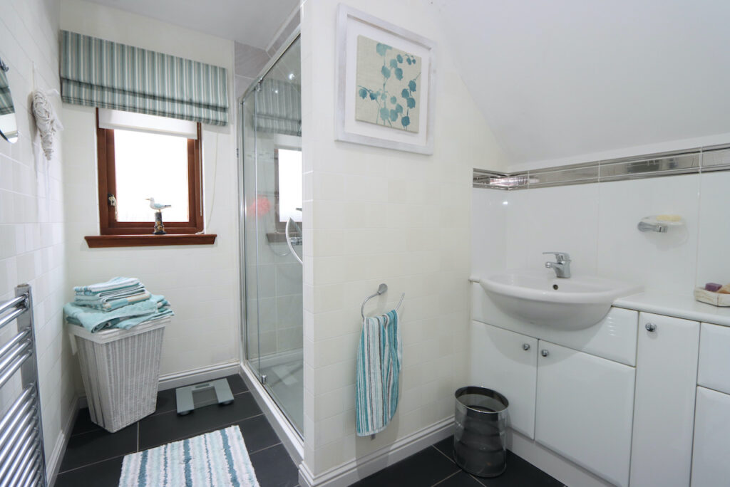On the upper level, is the spectacular master bedroom suite benefitting from 2 large walk in wardrobes and contemporary ensuite facilities. The ensuite has been finished in a modern white shower suite with chrome towel warmer and fitted vanity furniture.