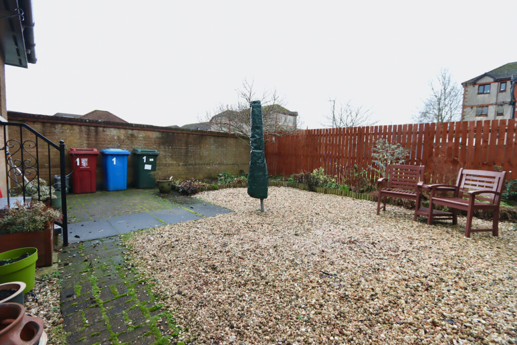 The rear gardens have been landscaped to provide year round low maintenance, with mono block patio area and chipped area with bordering shrubs. A side wrought iron gate leads to the garage and driveway.