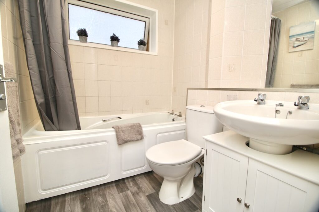 The two double bedrooms are of a generous size and pleasing to be in with brand new flooring coverings, blinds and both have excellent wardrobe storage. Finally the bathroom which consists of WC, sink, bath, electric shower, complete with ceramic wall tiling, new flooring and white vanity furniture.