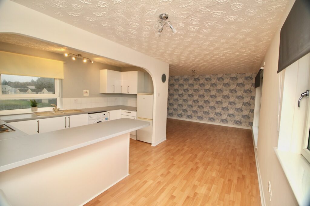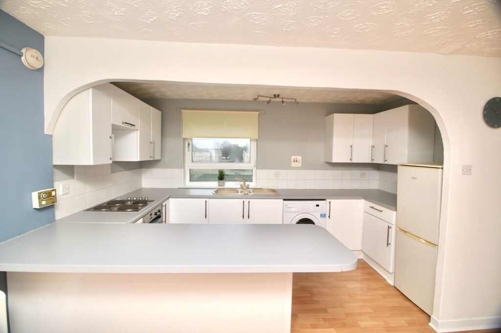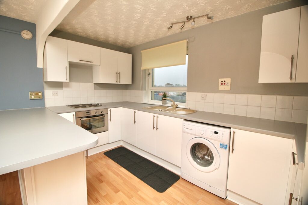 The inviting hallway provides access to all accommodations on offer and the property also boasts excellent storage. As you enter the open plan kitchen/lounge/dining area you will be immediately impressed by the generous size of room with large dual aspect double glazed windows which flood the room with natural light. The modern kitchen has been fitted with an excellent range of base and wall units which are finished with white gloss doors complete with electric oven, washing machine, fridge/freezer which are all included in the sale. This area also has a breakfasting bar which is the perfect spot for family mealtimes or entertaining.