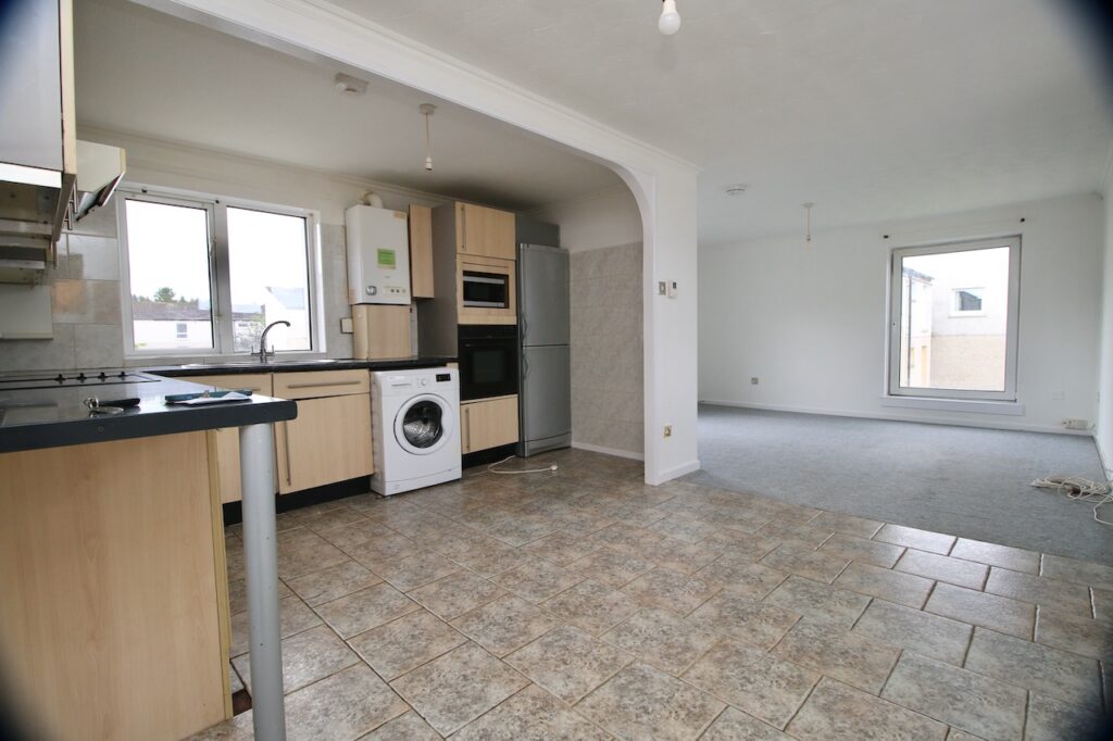 The inviting hallway provides access to all accommodations on offer and the property also boasts excellent storage. As you enter the open plan living area you will be immediately impressed by the size of room, with two large double glazed windows which floods the room with natural light. This area also has the additional space for dining which is perfect for mealtimes or entertaining. The kitchen offers a good range of base and wall units and includes, hob, built in oven/microwave, fridge/freezer and washing machine, fridge freezer which are all included in the sale.