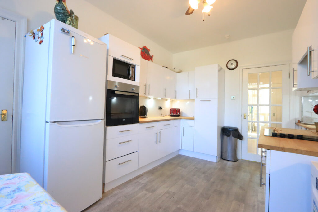 Welcoming you inside is a practical entrance vestibule leading into the lovely hallway. The lounge offers a relaxing space with a beautiful deep set bay window, flooding the room with natural light, a feature fireplace offers a delightful focal point whilst providing extra warmth for cosy evenings. The kitchen/dining provides an ideal setting for morning coffee, offering a delightful kitchen complete with oven, hob and hood. In addition to ample fitted storage and workspace, the kitchen is finished in a white door with contrasting solid wood work surface. A large cupboard provides space for tumble dryer and additional storage.