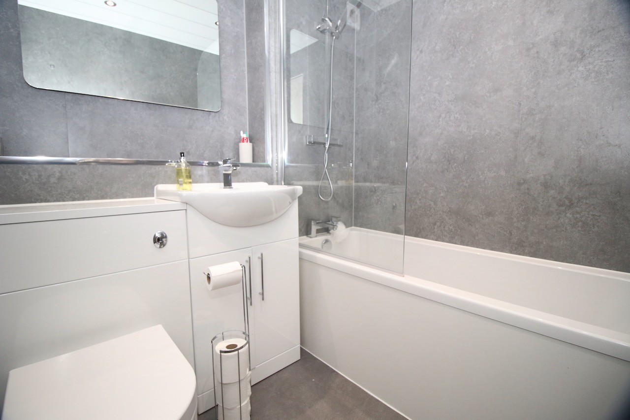 The spacious lounge/dining has an inviting atmosphere complete with french doors leading to a Juliette balcony which allows an abundance of natural light into the property. A beautiful fireplace takes pride of place in this pleasant living space and is an eye catching addition to this room. The modern kitchen offers a good range of base and wall units in a light oak veneer finish. The two good sized DOUBLE bedrooms both benefit from fitted mirrored wardrobes which offer impressive storage. The recently upgraded modern bathroom offers a sleek interior complete with fitted vanity furniture, chrome towel heater and shower over bath.