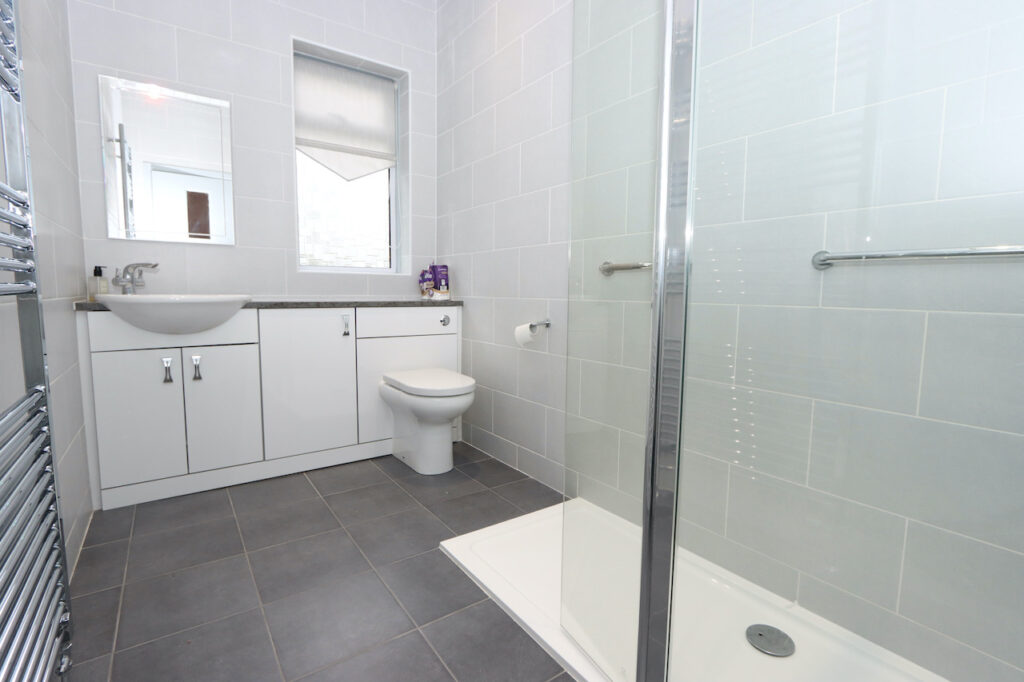 The immediately impressive welcome hallway gives access to all accommodations on the one level. A newly fitted contemporary shower room, complete with sleek ceramic tiling, chrome towel heater and vanity furniture adds a lovely touch of luxury.