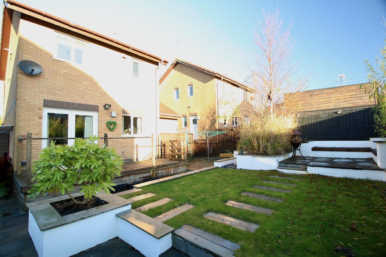 The rear garden has been designed by professional landscapers which includes a periphery of plants, trees and shurbs. The garden enjoys several patio areas including an extensive deck and a large seated area to the rear which is perfect for morning coffee or outdoor entertaining.It also has the benefit of a 6ft surrounding fence ideal for extra privacy and the convenient garden shed is also included in the sale. To the front of the property there is a private driveway and integral single garage.