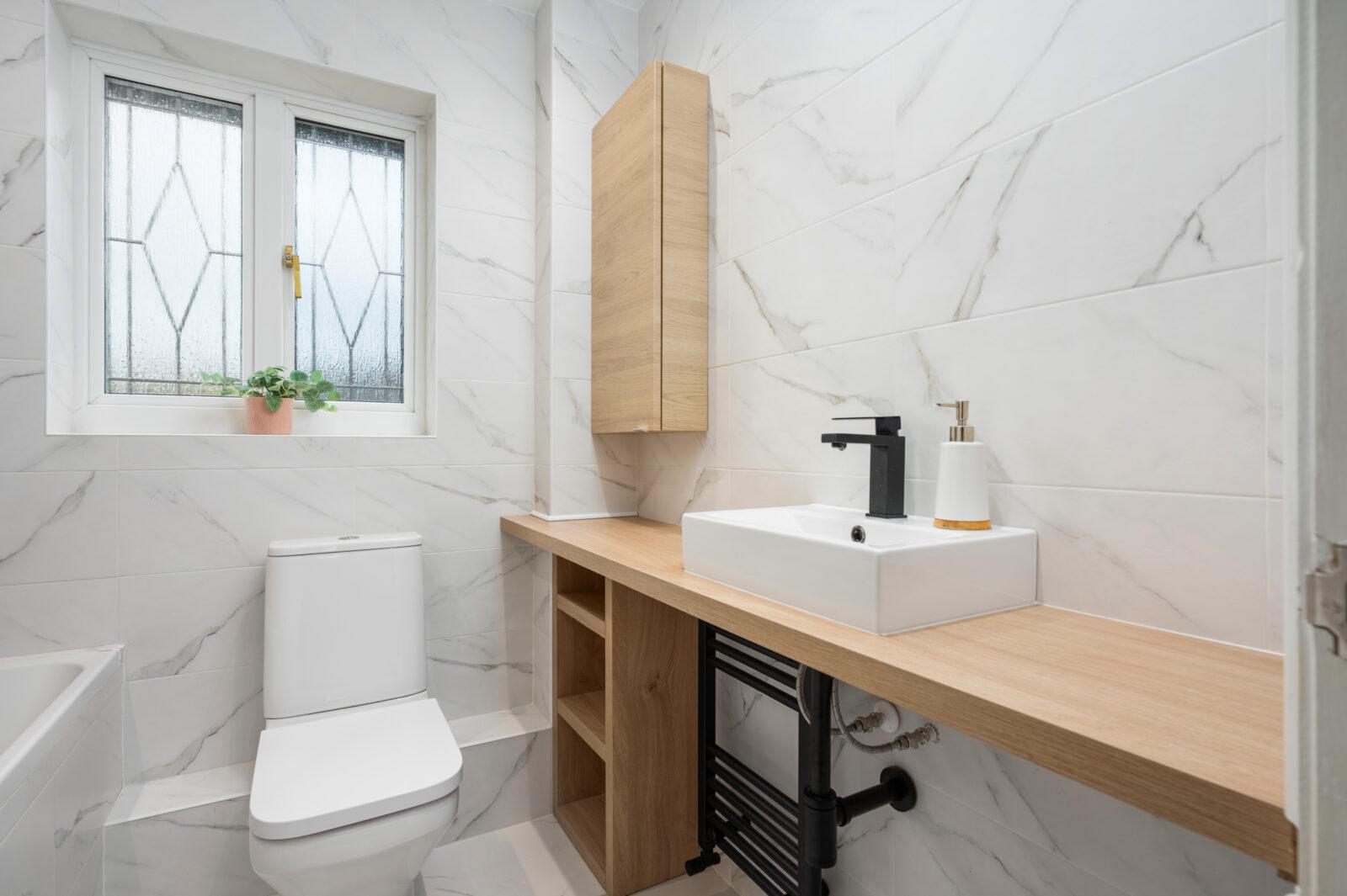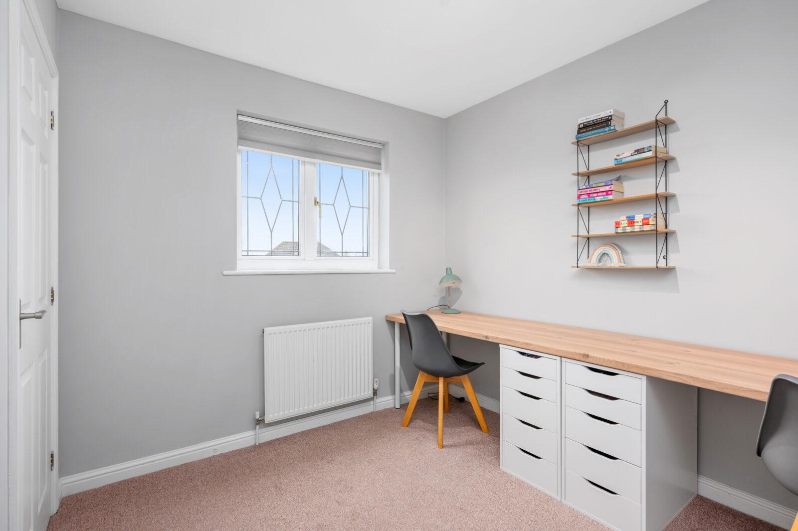 On the upper level the bright and airy hallway leads to four well proportioned double bedrooms, all of which benefit from their own fitted wardrobes. The master bedroom enjoys its own ensuite facilities complete with separate shower cubicle, WC and wash basin finished with stunning feature wall tiling and oak style vanity furniture. The spacious family bathroom has been recently remodelled comes complete with WC, bath, overhead rainwater shower, feature wall, vanity furniture and black accessories.