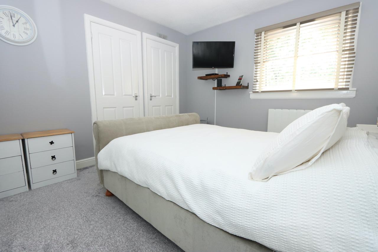 On the upper level, the two double bedrooms offer good size accommodation and both bedrooms also benefit from double mirror sliding wardrobes, offering great storage.  The family bathroom has been fitted with a modern white suite, bath with overhead electric shower, vanity wash basin and chrome towel warmer, contemporary tiling adds a touch of luxury to this already gorgeous property.
