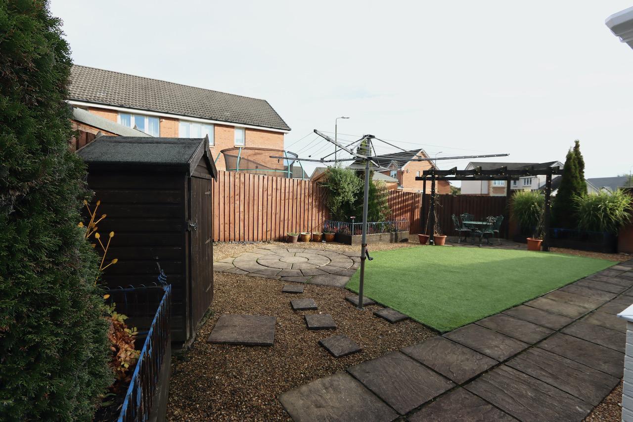 On the upper level, the four bedrooms offer good size accommodation. The spacious master bedroom enjoys a feature bay window, adding a touch of luxury to this room and also comes with stunning ensuite facilities and built in wardrobes. Three further double bedrooms are available on this level, with two of these featuring fitted wardrobe storage with hidden home office/TV space fitted with electrics. The family bathroom has a modern white suite, with jacuzzi bathtub, fitted vanity furniture and chrome towel heater. An attractive summerhouse is an ideal space for working from home or as a place to relax, and comes fitted with lights and electrics.