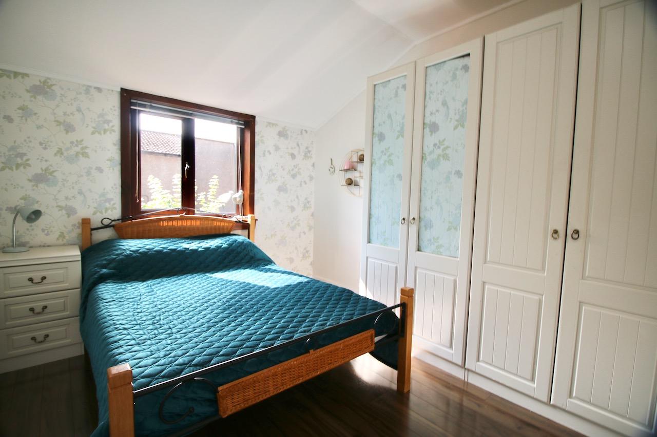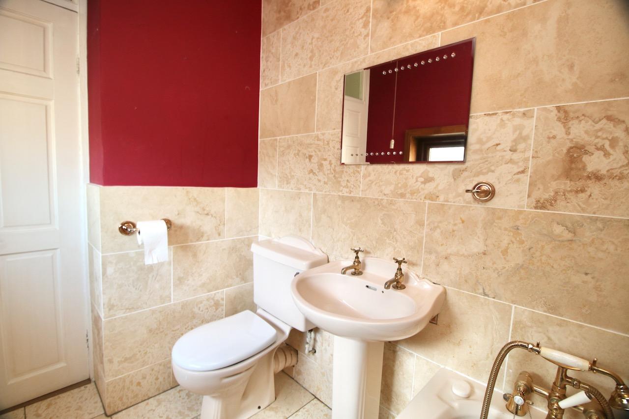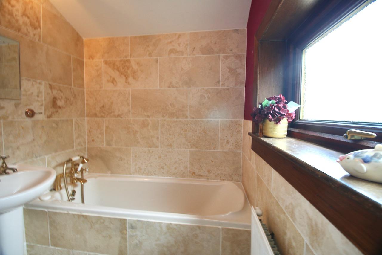 On the upper level, the light and airy hallway leads to the impressive three bedrooms which offer good size accommodation and are pleasing to be in. The family bathroom includes: bath, wash basin, WC, finished with floor to ceiling ceramic tiling and gold accessories.