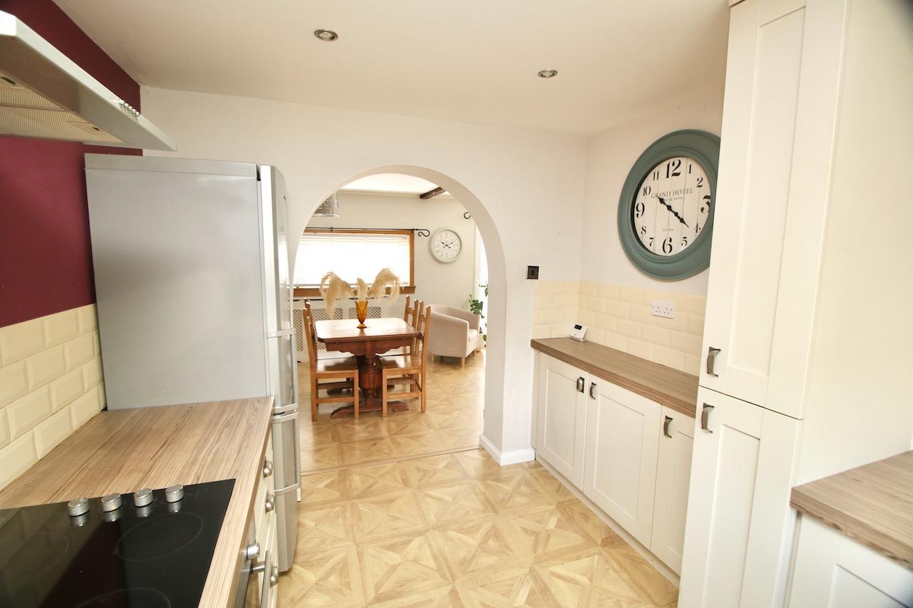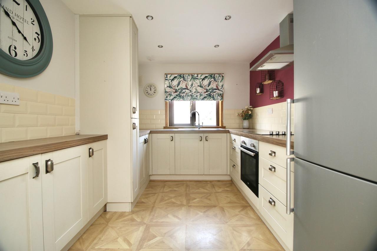 As you enter the property you are welcomed by the reception hallway which leads to all accommodations on the lower and upper floor. The bright open plan lounge/dining area is sure to impress by the generous proportion of the room, large double glazed patio doors flood the room with natural light and access the rear garden. The dining area is the perfect place for family mealtimes or entertaining, with convenient back door access out into the external store and private garden. The stunning kitchen has been recently remodelled giving generous units, complete with electric hob, oven, integrated washing machine, fridge freezer which are all included in the sale. The kitchen is finished with cream shaker doors, wood effect worktop and brick ivory tiling.