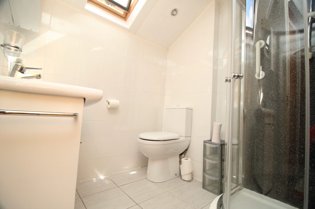 On the upper level, the light and airy hallway leads to two impressive double bedrooms which are pleasing to be in and offer good size accommodation and excellent storage. The family shower room has been fully fitted with floor to ceiling wall tiles, with vanity furniture and corner shower cubicle with overhead shower.