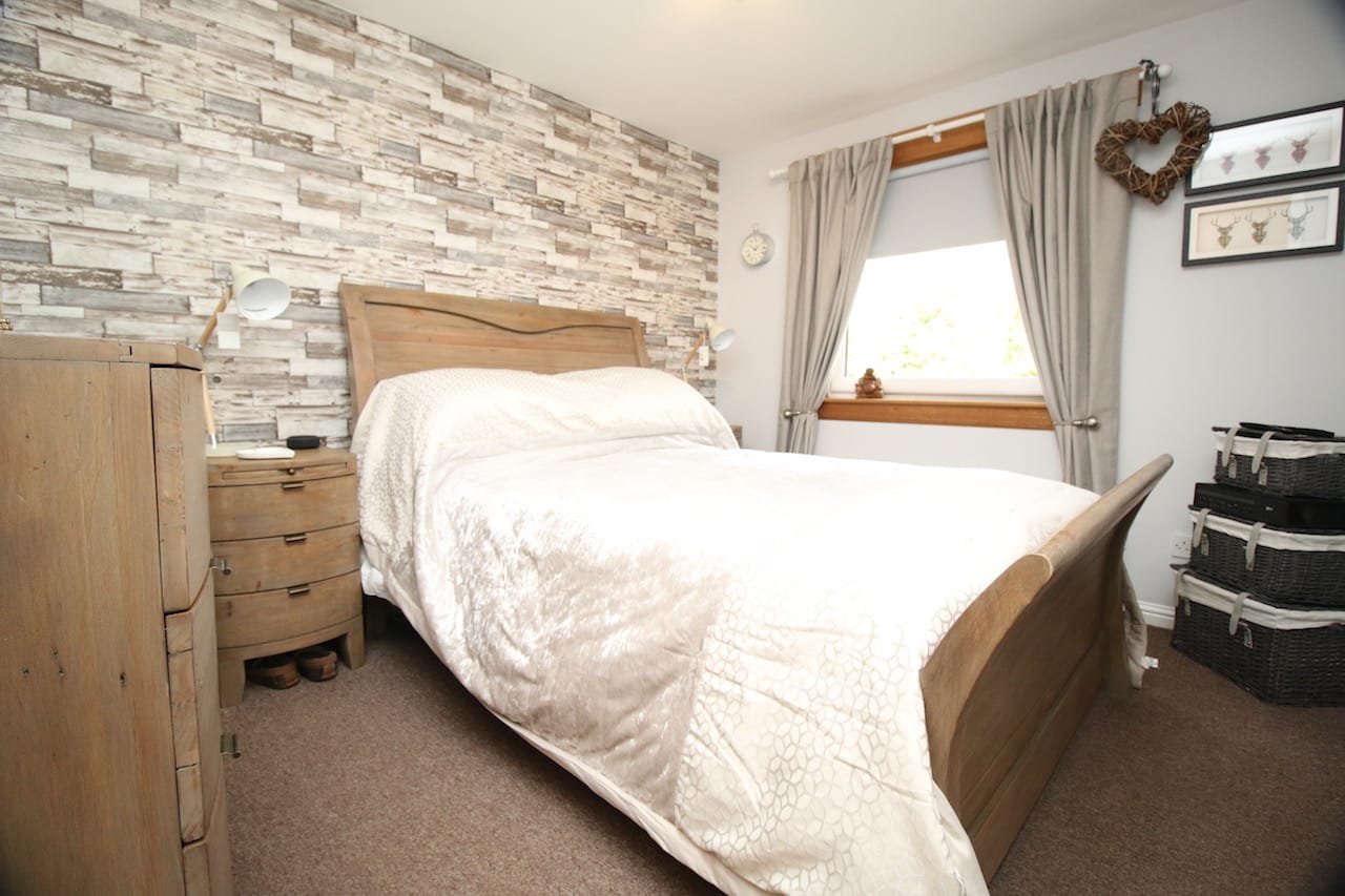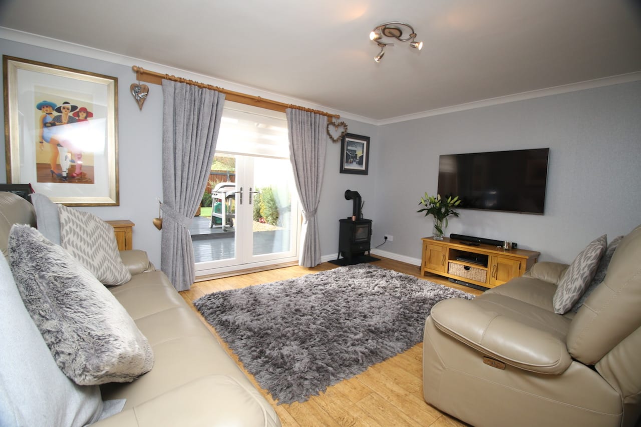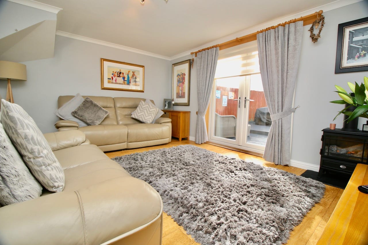 The lounge is a fantastic space for families to live or for entertaining, with feature electric fireplace making a lovely focal point to this spacious room, beautiful french door open out on to the landscaped garden with decking and artificial grass offering year round low maintenance. The kitchen has been upgraded with a contemporary kitchen and solid wood work surfaces with integrated fridge, dishwasher and stunning range cooker.
