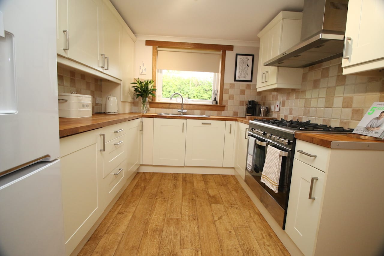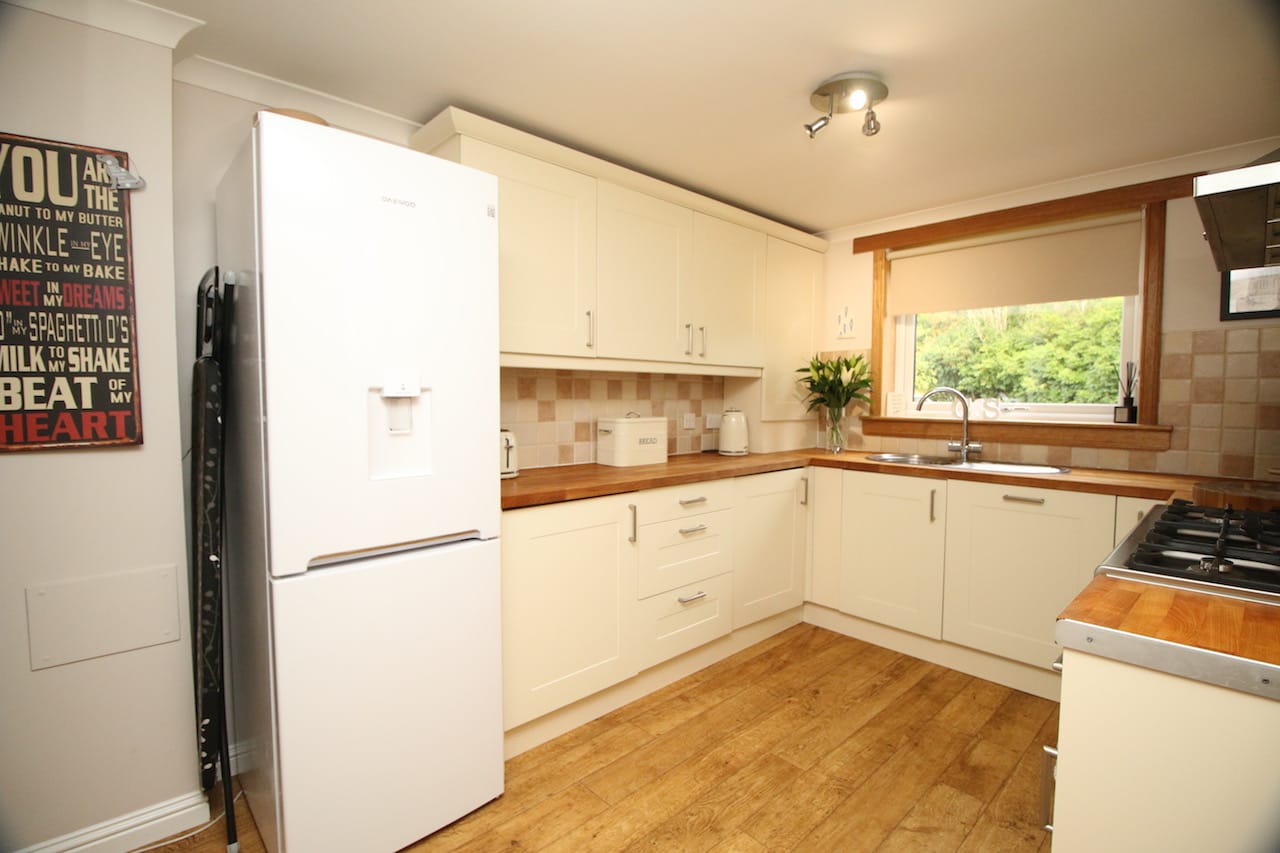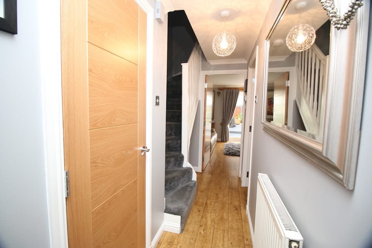 The lounge is a fantastic space for families to live or for entertaining, with feature electric fireplace making a lovely focal point to this spacious room, beautiful french door open out on to the landscaped garden with decking and artificial grass offering year round low maintenance. The kitchen has been upgraded with a contemporary kitchen and solid wood work surfaces with integrated fridge, dishwasher and stunning range cooker.