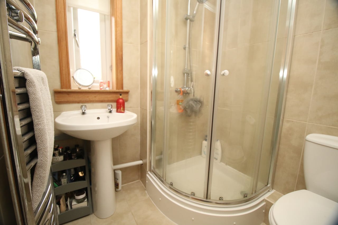 On the upper level are two single bedrooms and master ensuite bedroom, beautifully decorated and presented. The third bedroom is currently utilised as a dressing room. The family bathroom has a modern white suite with heated chrome towel rail. The property also benefits from double glazing, gas central heating and garage.