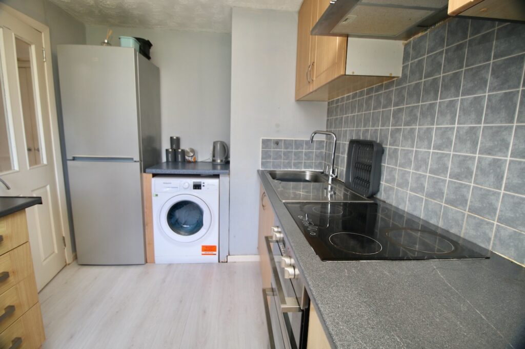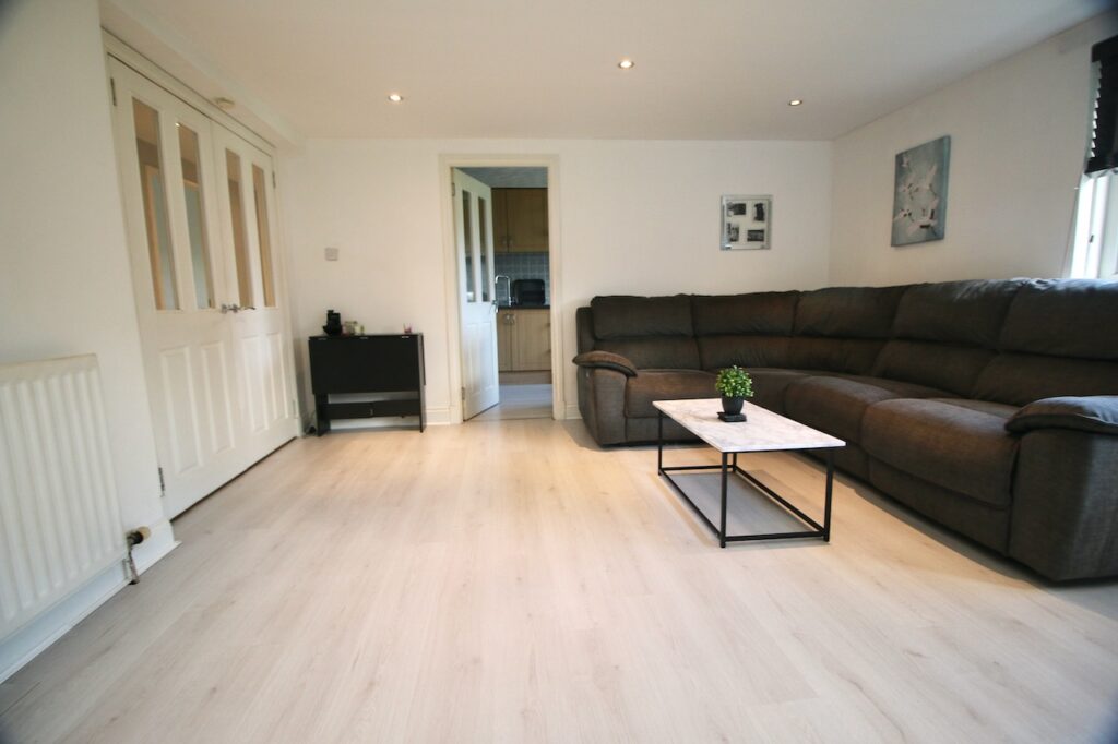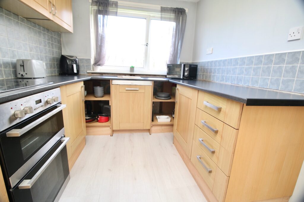 The inviting hallway provides access to all accommodations on offer and the property also boasts excellent storage. As you enter the open plan living area you will be immediately impressed by the size of room, with large double glazed windows which flood the room with natural light complete with feature glass doors. This area has the additional space for dining which is perfect for mealtimes or entertaining. The kitchen offers a good range of base and wall units and includes, electric hob, double oven, integrated dishwasher, washing machine and fridge freezer.