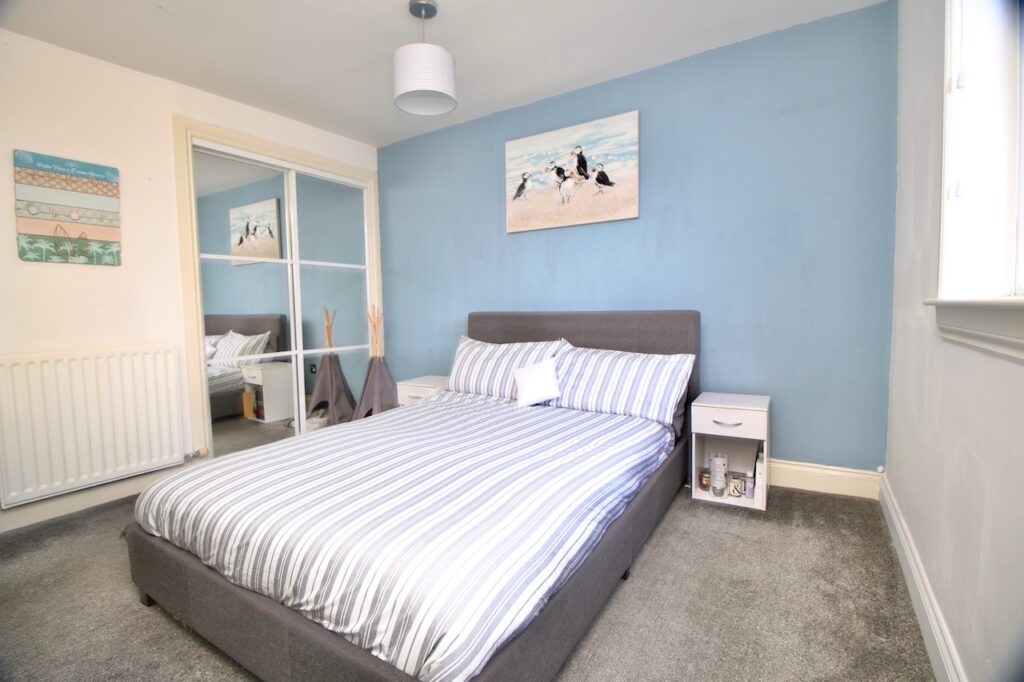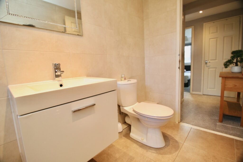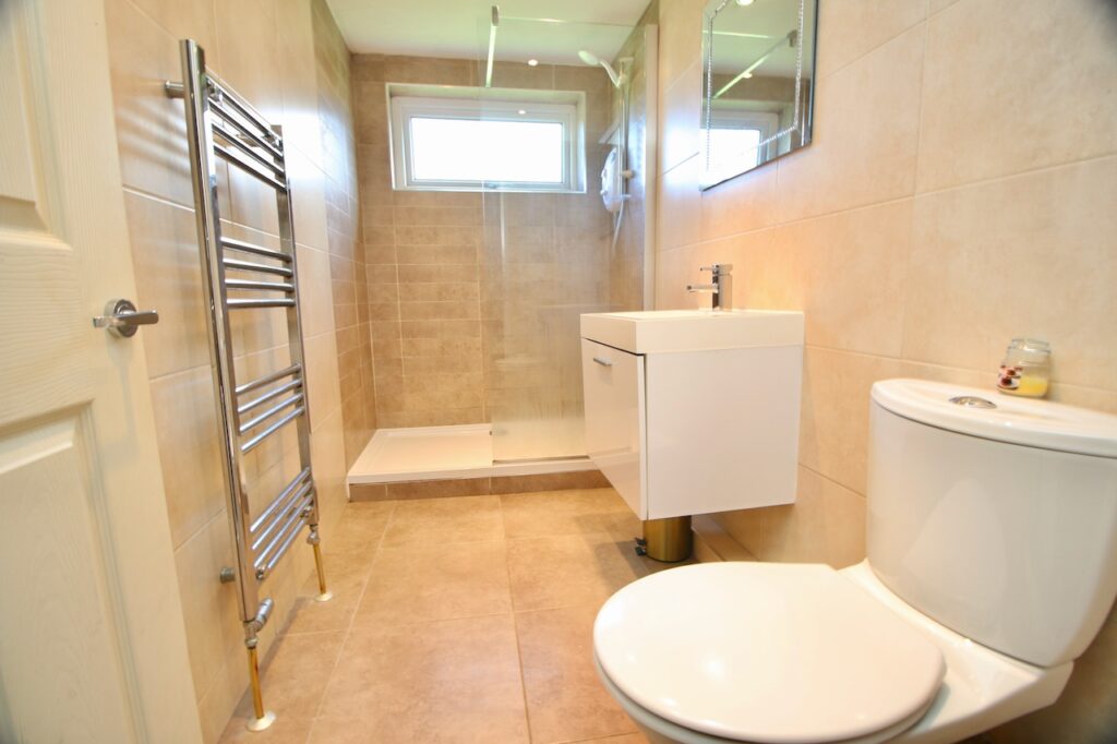 The three bedrooms are of a generous size which are bright and airy two are complete with large wardrobe storage. Finally the stunning shower room which consists of WC, floating sink, double walk in shower, complete with feature wall tiles, matching floor tiles, white gloss vanity furniture and chrome accessories.