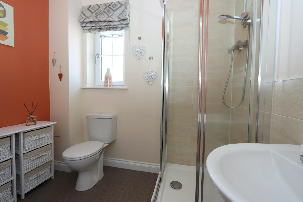 On the upper level are four double bedrooms and the family bathroom. Overlooking the rear garden, the master bedroom is luxurious and bright and benefits from its own ensuite facilities and two double wardrobes which provides excellent storage. The guest bedroom also benefits from two double wardrobes and ensuite, adding that extra luxury to this beautiful home. Two further double bedrooms and spacious family bathroom completes this modern property.