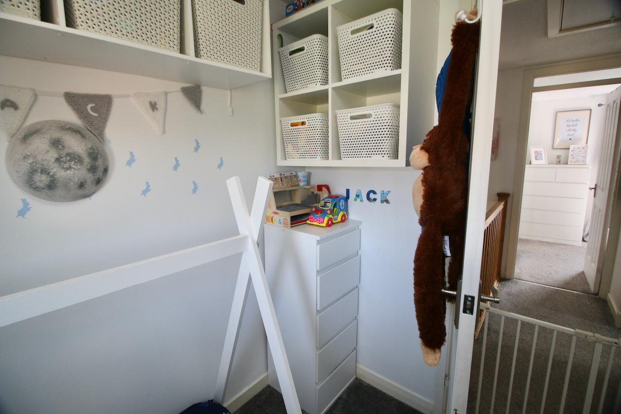 On the upper level are three well proportioned bedrooms, two benefit from their own wardrobe storage. The contemporary family bathroom is complete with WC, bath, overhead shower, wash basin finished with grey marble wet wall, white gloss vanity furniture and black accessories.