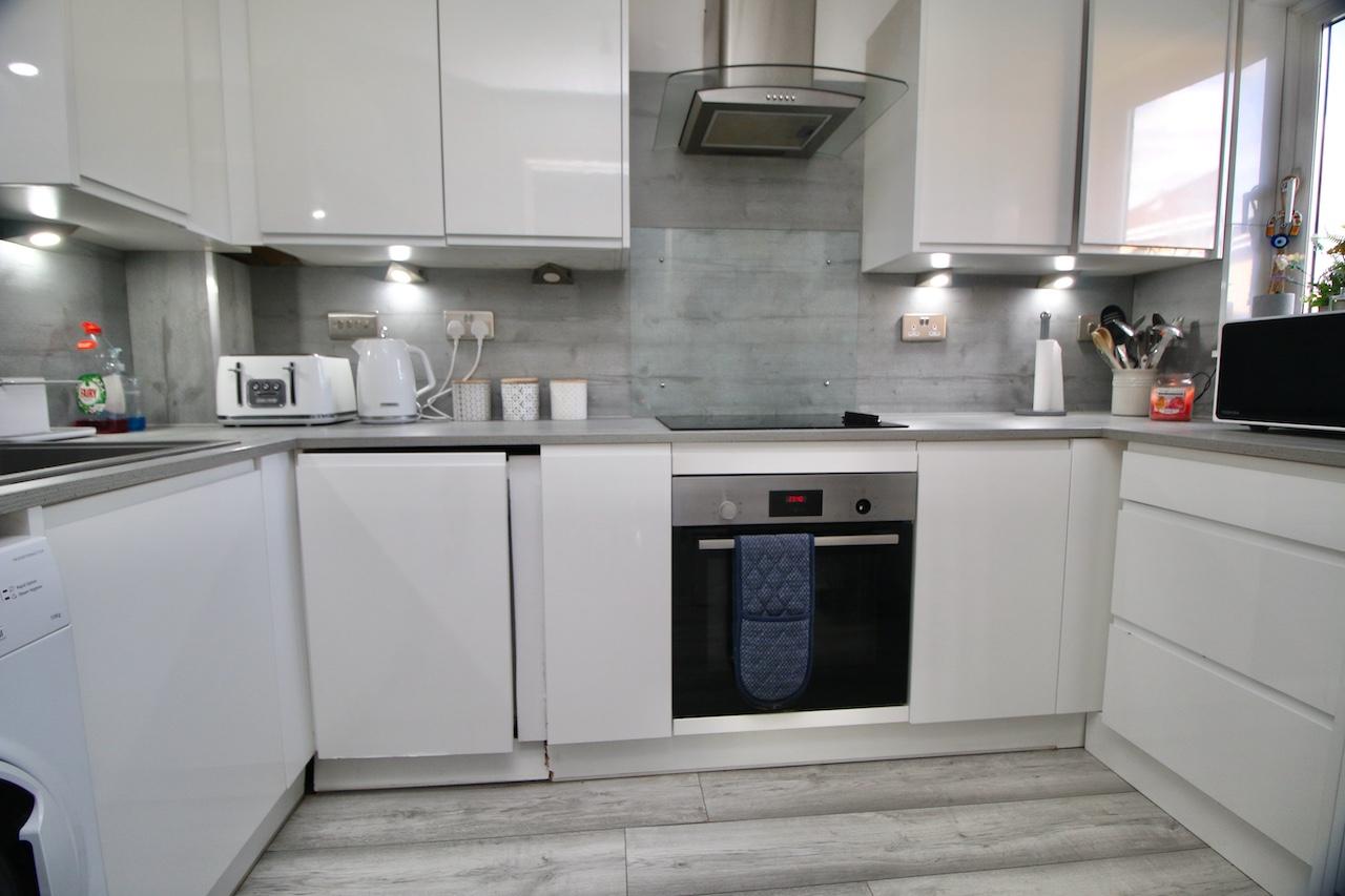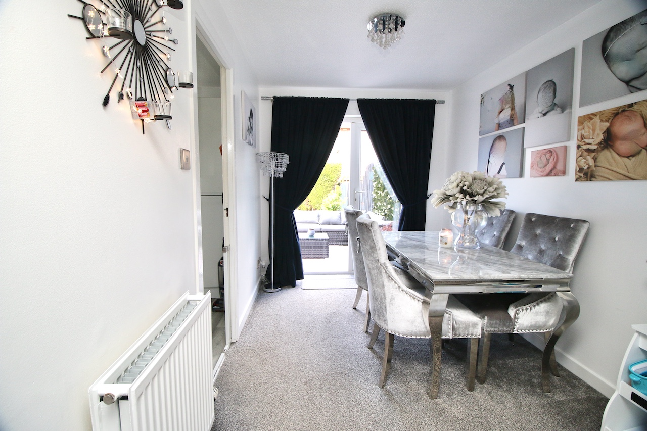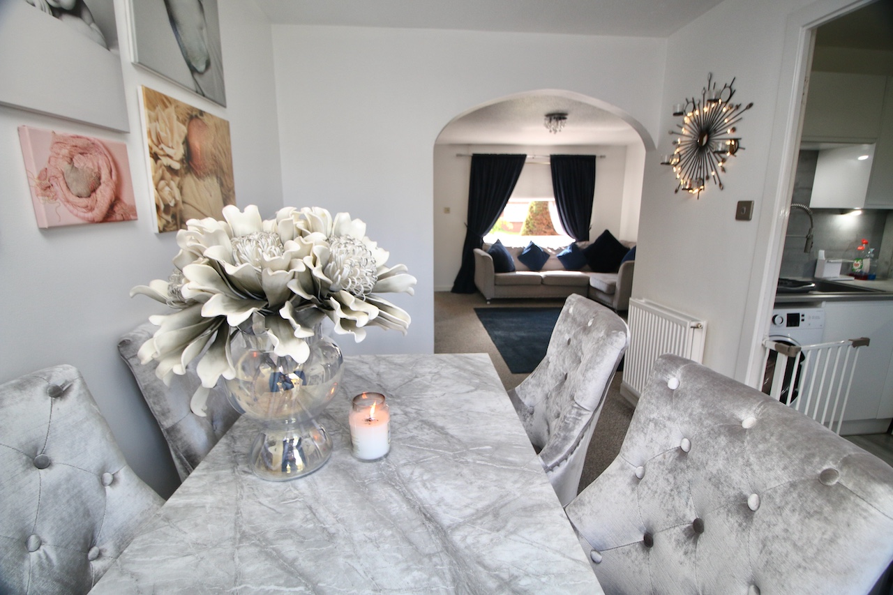 As you enter the property you are welcomed by the convenient vestibule which gives access to all accommodations on the lower and upper floor. As you enter the open plan lounge/dining room you will be immediately impressed by the generous size of the room with front facing double glazed windows which flood the room with natural light. The dining area is the perfect space for family mealtimes or entertaining with beautiful French Doors which access the rear garden. The contemporary kitchen has a good range of base and wall units making excellent room of the available space. The kitchen is complete with hob, oven, integrated fridge/freezer, dishwasher and washing machine which are included in the sale. The kitchen is finished with white gloss units, grey worktops, feature down lights and chrome accessories.