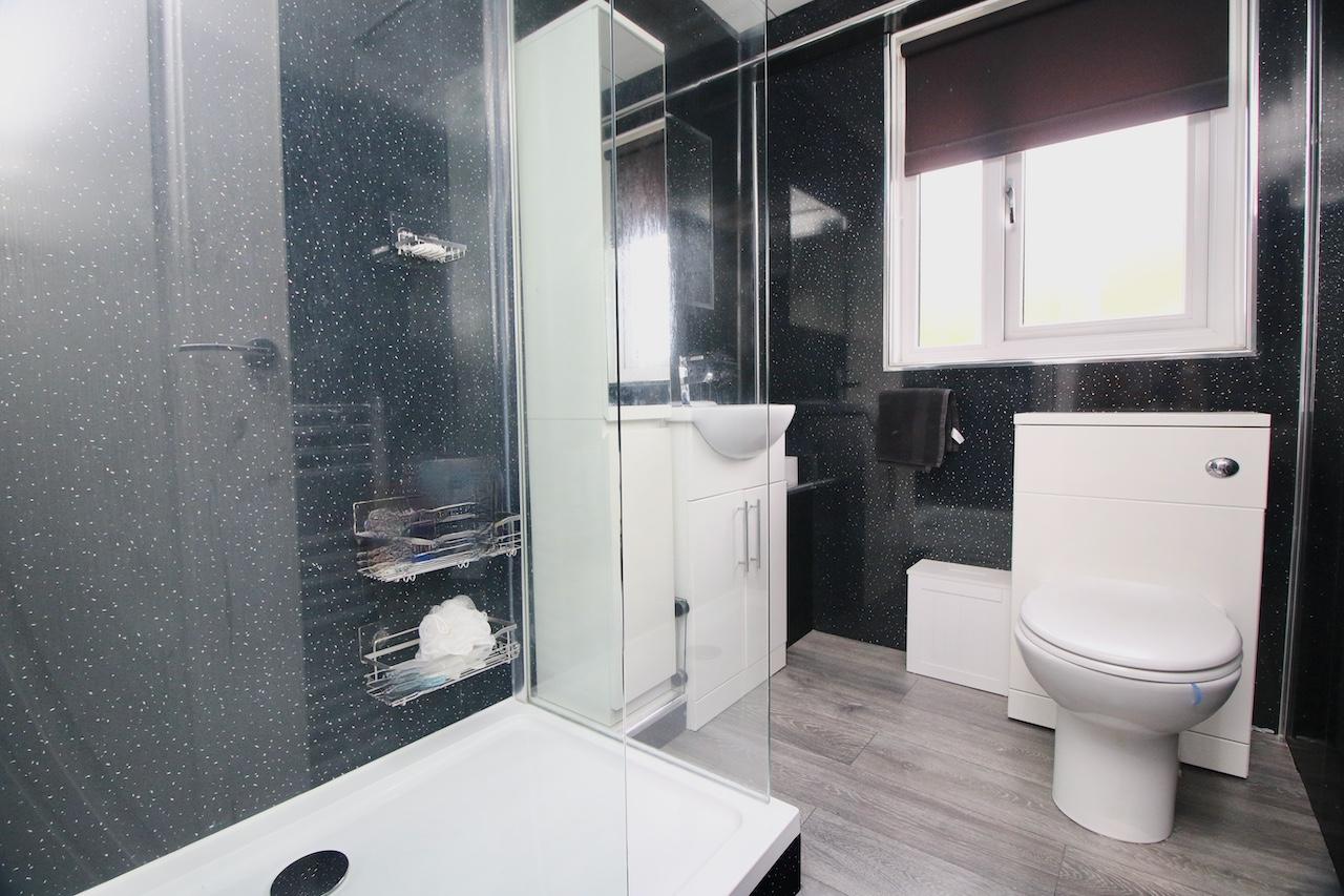 On the upper level, the light and airy hallway leads to three bedrooms which are all pleasing to be in and offer good size accommodation all with their own wardrobe storage. The modern shower room includes, double walk in shower, WC, wash basin complete with white gloss vanity furniture and black contemporary wet wall.