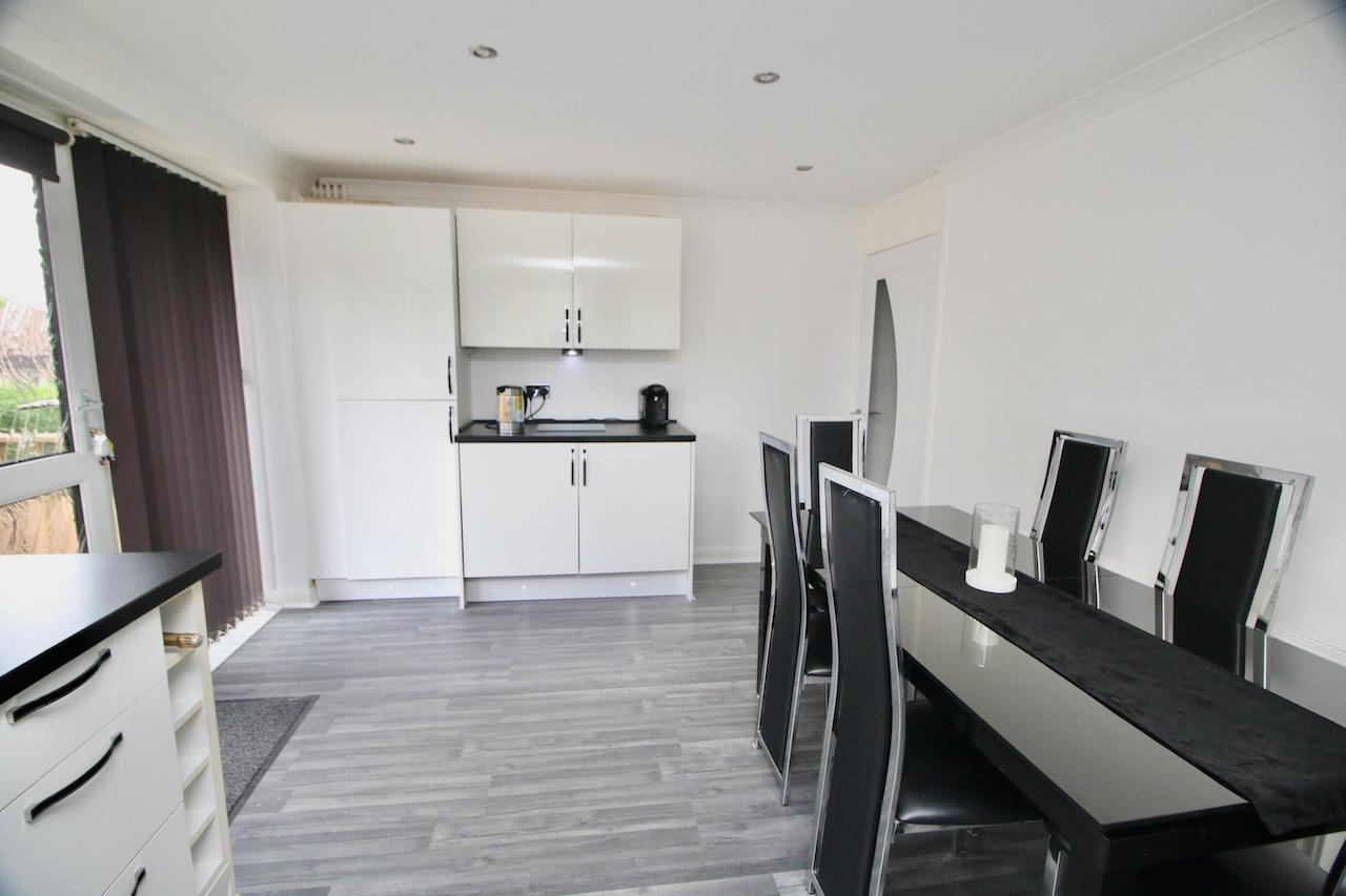 A welcome entrance gives access to all accommodations on the lower and upper floor. The bright front facing lounge is sure to impress by the generous proportion of the room, with double glazed windows which flood the room with natural light. The contemporary kitchen/dining area has been fitted with an excellent range of base and wall units complete with hob, double hob, integrated fridge and freezer, dishwasher, washing machine which are all included in the sale. The kitchen is finished with white gloss doors, black worktop and chrome accessories. The dining area is the perfect place for family mealtimes or entertaining and has rear door access onto the enclosed garden. To complete the ground floor is a convenient store which is currently being used as a utility room.
